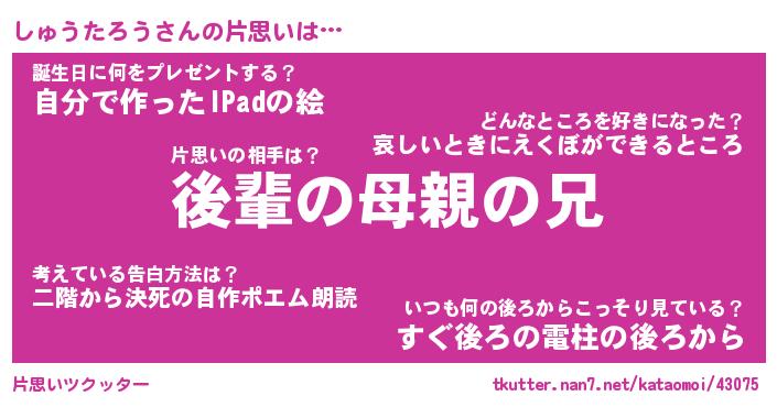| ヒーロー風カッコイイあだ名 | 『スーパーシュウタロウ』『暗黒騎士シュ』 |