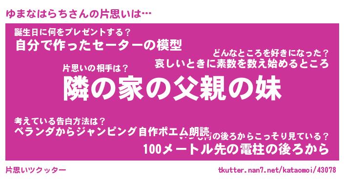 | ツイッター | ゆまなはらちさんのツイッターID『kikurage_idle』 |