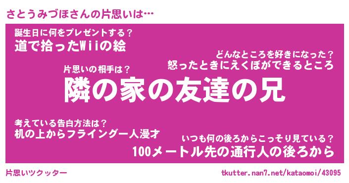 | ヘコむあだ名 | 『さとっふぃ~』『つくし』 |