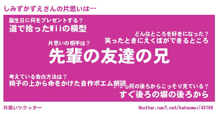 | 胡散臭い通販商品みたいなあだ名 | 『モテモテ間違いなし霊験あらたかなお札…その名も「しみずかずえ」』 |