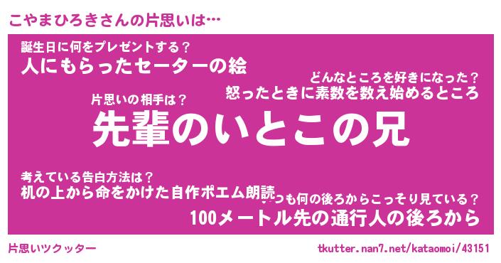 | 男性向けラノベタイトル風あだ名 | 『こやまひろきの憂鬱』 |