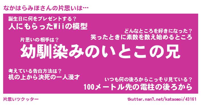 | 伝説のあだ名 | 『伝説のスナイパーなかはらみほ』 |