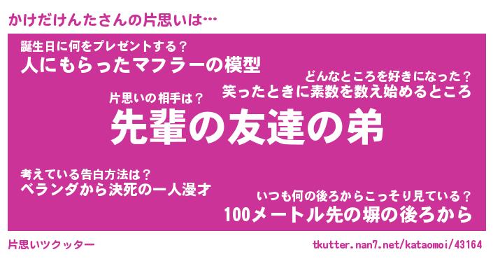 | 胡散臭い通販商品みたいなあだ名 | 『モテモテ間違いなし霊験あらたかなお札…その名も「かけだけんた」』 |