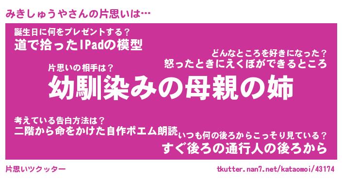 | 恥ずかしいあだ名 | 『プリティーみきしゅうや』『みきっちょ』 |