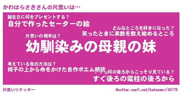 | 女子向けラノベタイトル風あだ名 | 『(仮)かわはらさきのやんごとなき事情』 |