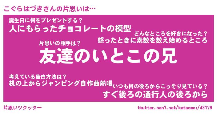 | 伝説のあだ名 | 『封印されしスナイパーこぐらはづき』 |