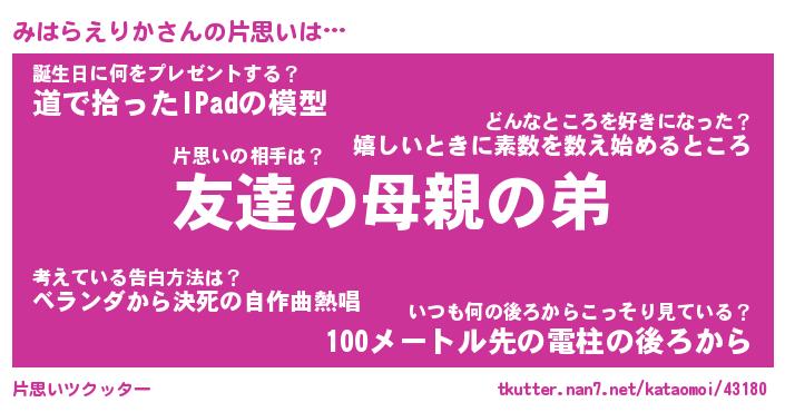 | 胡散臭い通販商品みたいなあだ名 | 『億万長者になれるブレスレット…その名も「みはらえりか」』 |
