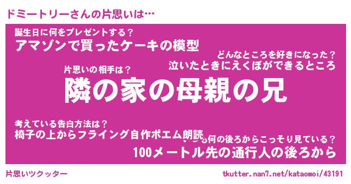 | 胡散臭い通販商品みたいなあだ名 | 『必ず成功するブレスレット…その名も「ドミートリー」』 |