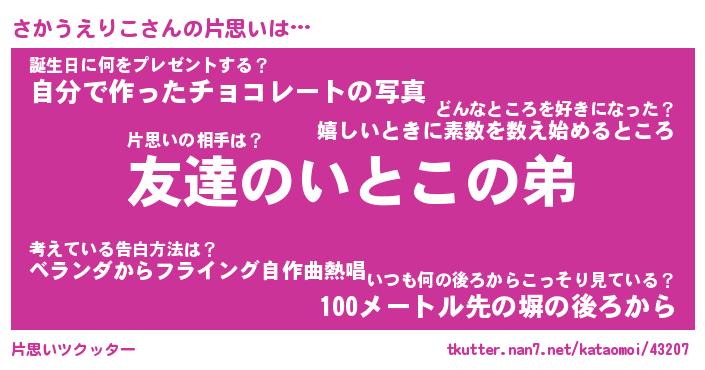 | ヘコむあだ名 | 『さかもー』『つくし』『さかっ子』 |