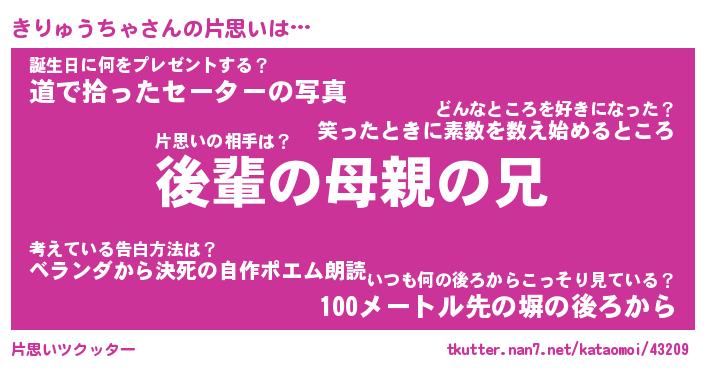 | ヘコむあだ名 | 『きりにー』『つくし』『きり太郎』 |