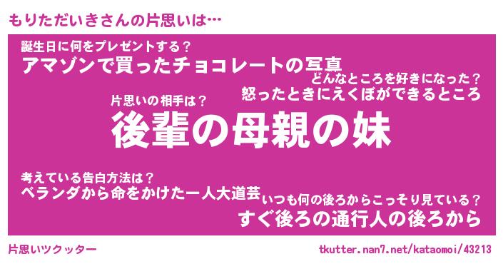 | 意味不明あだ名 | 『ペロリンもりただいき』 |