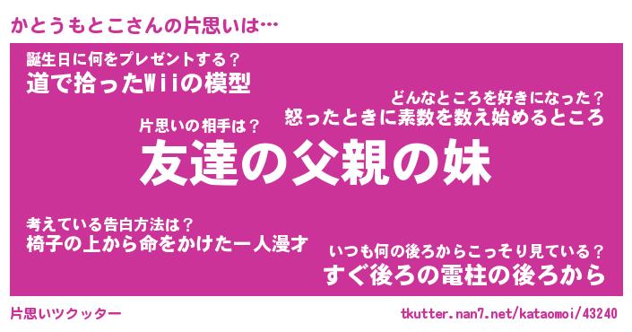 | ヒーロー風カッコイイあだ名 | 『スーパーカトウモトコ』『暗黒騎士カト』 |
