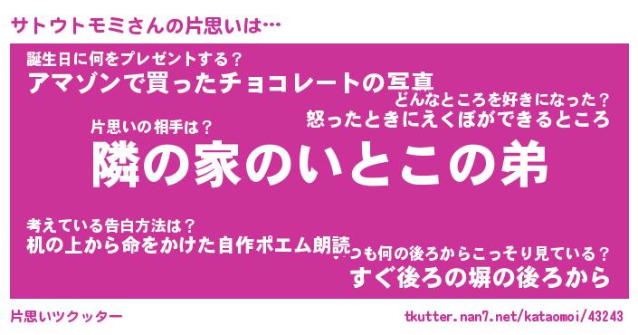 | ヒーロー風カッコイイあだ名 | 『スーパーサトウトモミ』『幻影騎士サト』 |