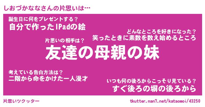 | 胡散臭い通販商品みたいなあだ名 | 『億万長者になれるブレスレット…その名も「しおづかなな」』 |