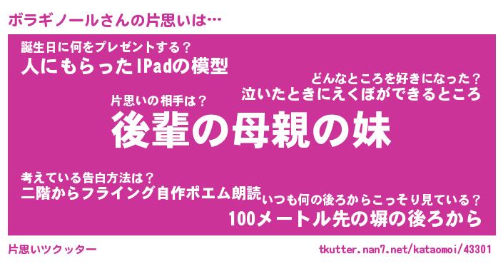 | ヘコむあだ名 | 『ボラにー』『酢こんぶ』『ボラ太郎』 |