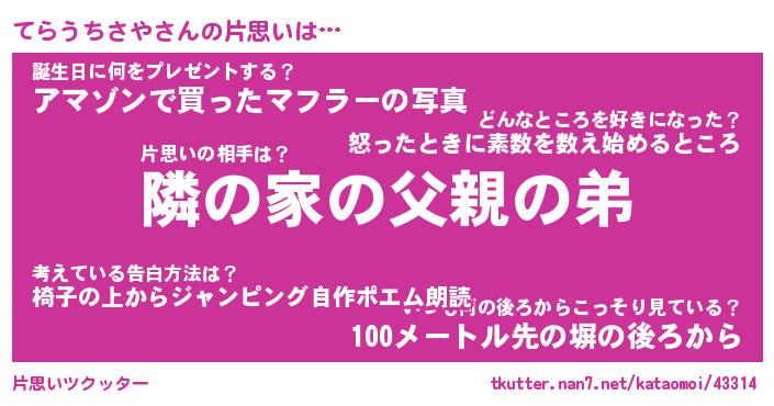 | ヘコむあだ名 | 『てらにゅー』『なまこ酢』『てらお』 |