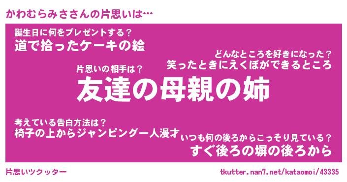 | ヘコむあだ名 | 『かわにー』『豆乳』『かわっ子』 |