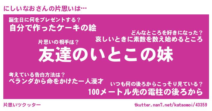 | ヘコむあだ名 | 『にしにゅー』『つくし』『にしを』 |