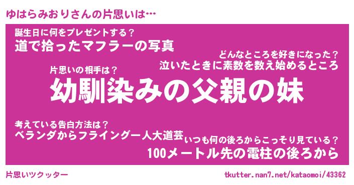 | 女子向けラノベタイトル風あだ名 | 『(仮)ゆはらみおりのやんごとなき事情』 |