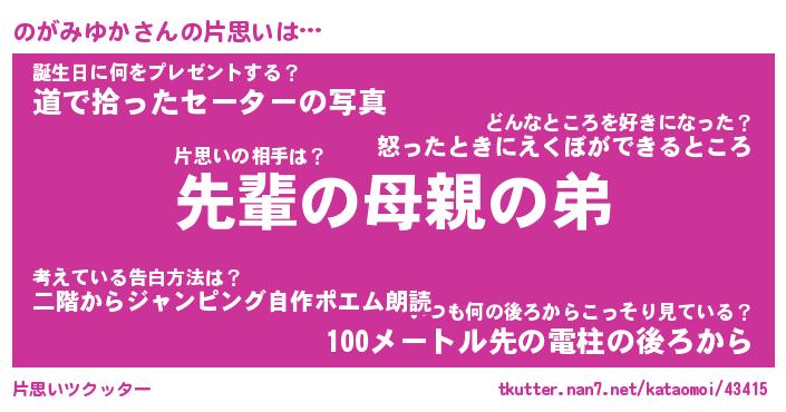 | 恥ずかしいあだ名 | 『プリティーのがみゆか』『のがっちょ』 |