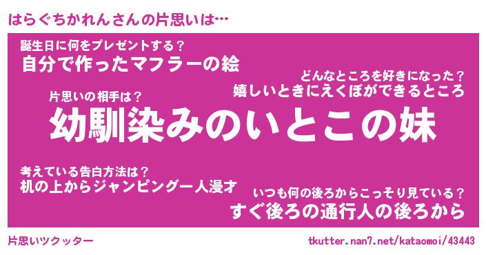 | 意味不明あだ名 | 『ペロリンはらぐちかれん』 |