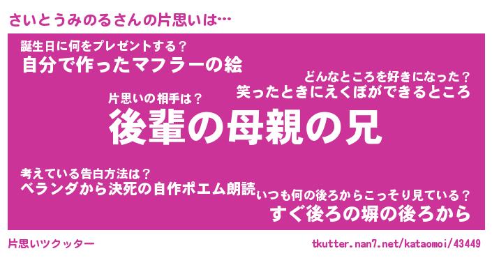 | ヘコむあだ名 | 『さいふぇ~』『つくし』『さいっ子』 |