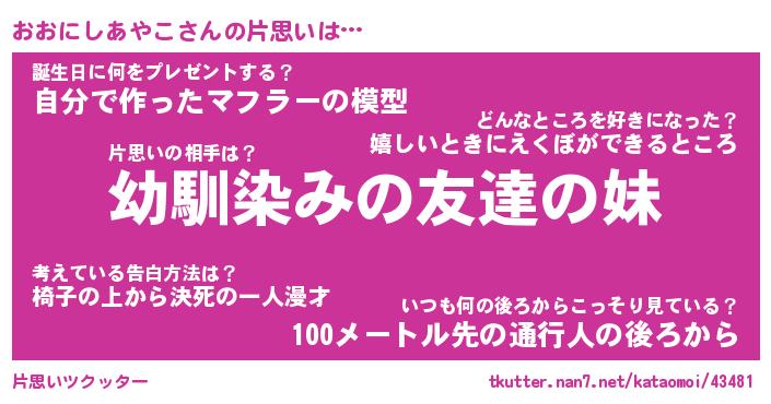 | 女子向けラノベタイトル風あだ名 | 『(仮)おおにしあやこのやんごとなき事情』 |
