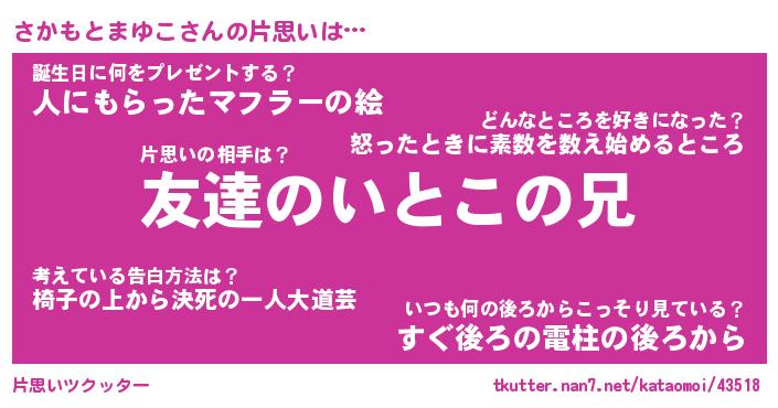 | 伝説のあだ名 | 『封印されしスナイパーさかもとまゆこ』 |