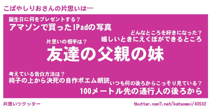 | 胡散臭い通販商品みたいなあだ名 | 『億万長者になれる水晶球…その名も「こばやしりお」』 |