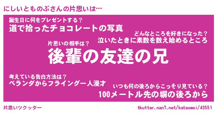 | ツイッター | にしいとものぶさんのツイッターID『namakemono_nyan』 |