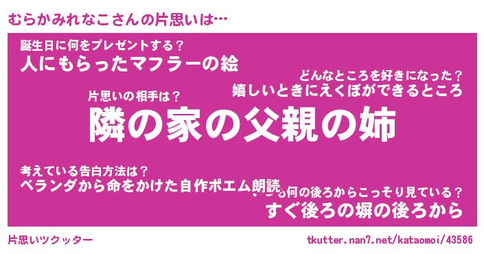| 女子向けラノベタイトル風あだ名 | 『(仮)むらかみれなこのやんごとなき事情』 |