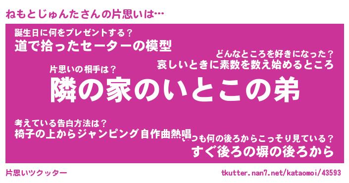 | 男性向けラノベタイトル風あだ名 | 『ねもとじゅんたの憂鬱』 |
