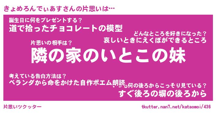 | 男性向けラノベタイトル風あだ名 | 『きょめろんでぃあすの憂鬱』 |
