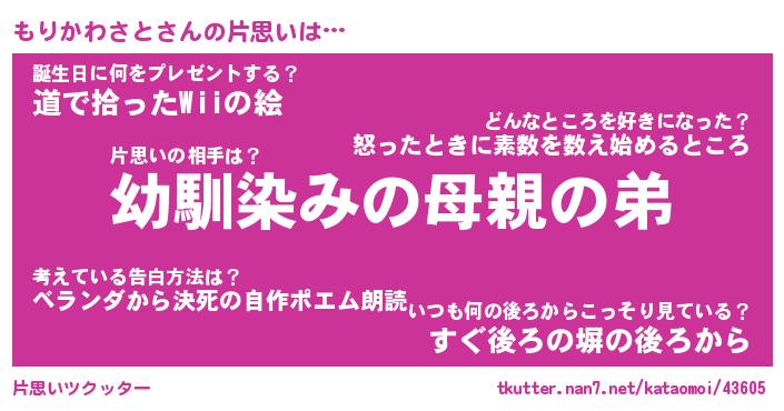 | ヘコむあだ名 | 『もりにー』『なまこ酢』『もりお』 |