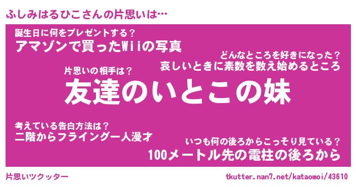 | 伝説のあだ名 | 『封印されしスナイパーふしみはるひこ』 |