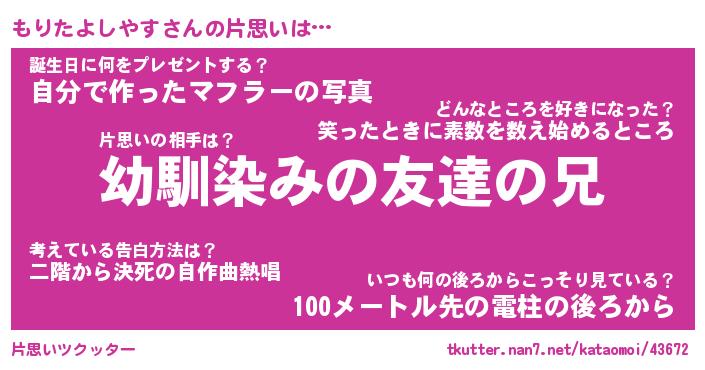 | ヘコむあだ名 | 『もりっふぃ~』『つくし』 |