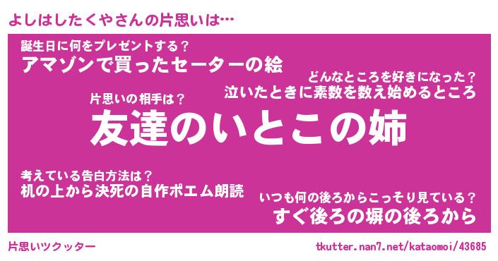 | 伝説のあだ名 | 『封印されしスナイパーよしはしたくや』 |