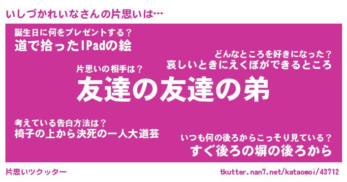 | 男性向けラノベタイトル風あだ名 | 『イシヅカレイナアートオンライン』 |