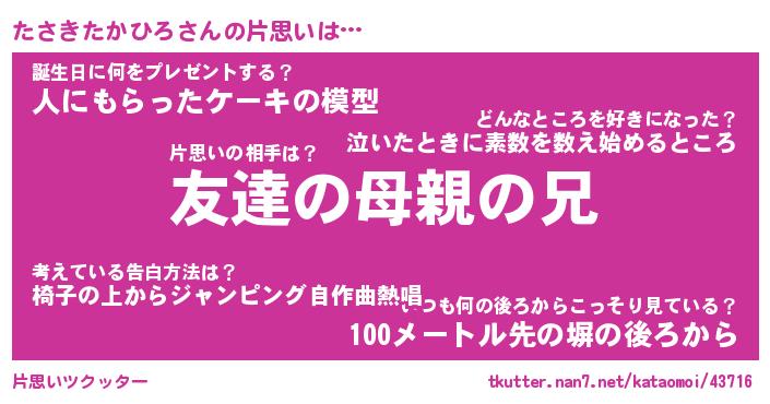 | ヘコむあだ名 | 『たさにー』『牛乳』『たさを』 |