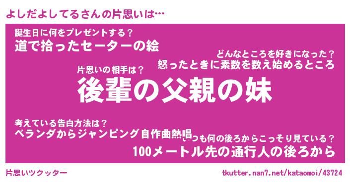 | 胡散臭い通販商品みたいなあだ名 | 『億万長者になれるブレスレット…その名も「よしだよしてる」』 |