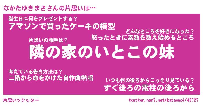 | 男性向けラノベタイトル風あだ名 | 『なかたゆきまさの憂鬱』 |