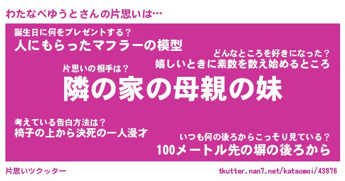 | 胡散臭い通販商品みたいなあだ名 | 『必ず成功するブレスレット…その名も「わたなべゆうと」』 |