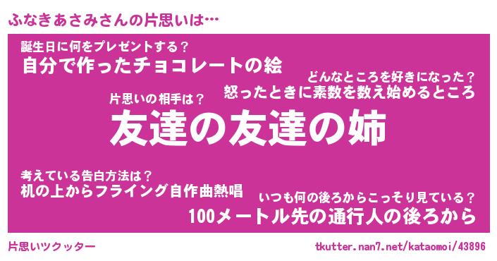 | 伝説のあだ名 | 『封印されしスナイパーふなきあさみ』 |