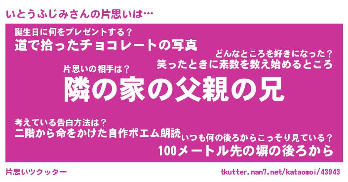 | 男性向けラノベタイトル風あだ名 | 『いとうふじみの憂鬱』 |
