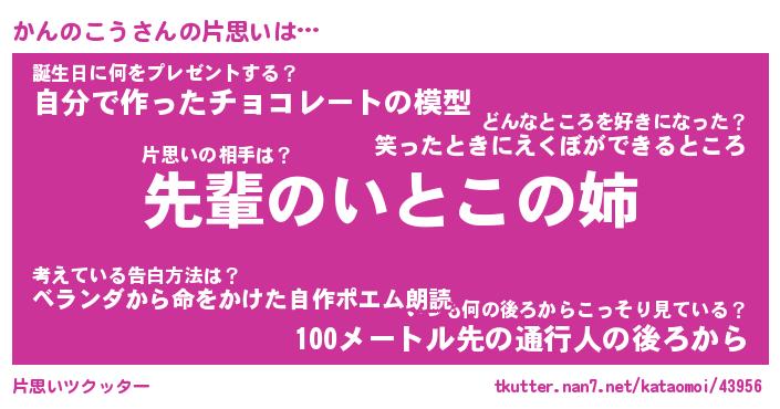 | ヘコむあだ名 | 『かんもー』『なまこ酢』『かんお』 |