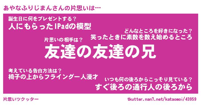 | 伝説のあだ名 | 『封印されしスナイパーあやなふりじまん』 |