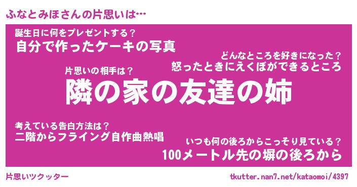 | ヘコむあだ名 | 『ふなもー』『牛乳』『ふなお』 |