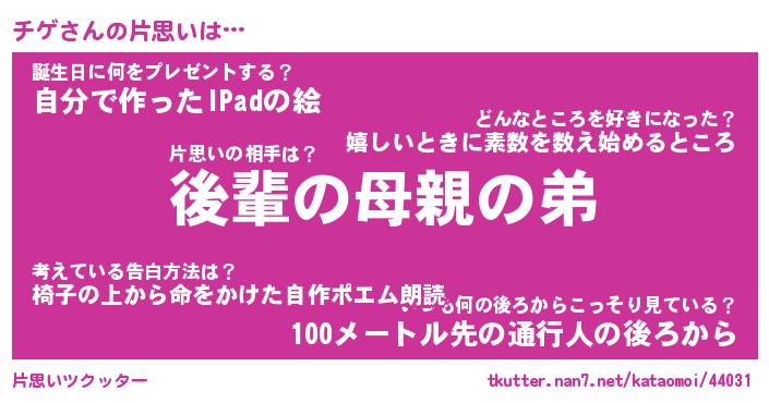 | ポケモン風あだ名 | 『チゲチュウ』『チゲダネ』『ヒチゲ』 |
