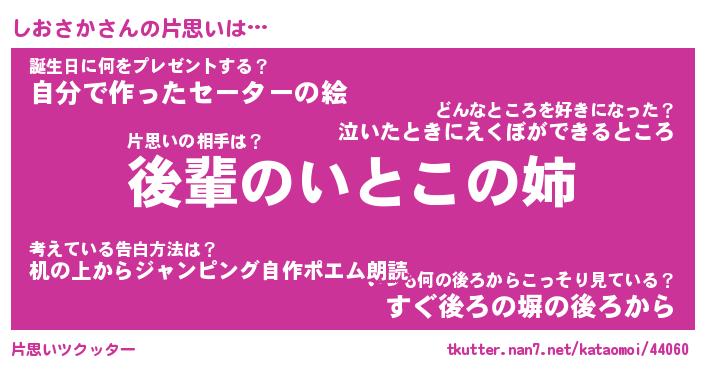 | 意味不明あだ名 | 『ペロリンしおさか』『永久保存しおさか』 |