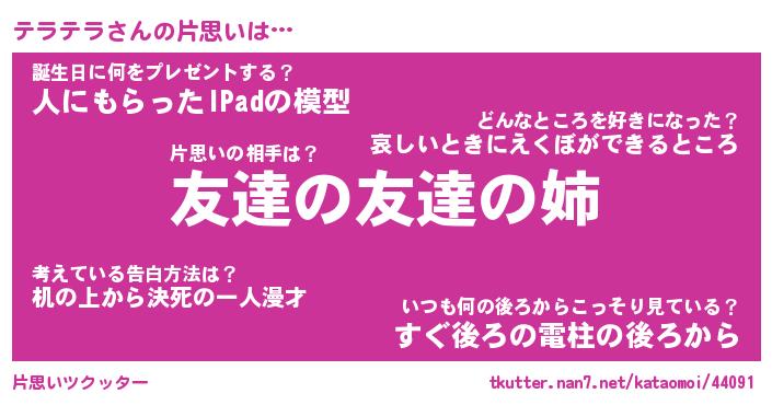 | 女子向けラノベタイトル風あだ名 | 『誰かこのテラテラを説明してください! ~契約から始まるウェディング~』 |